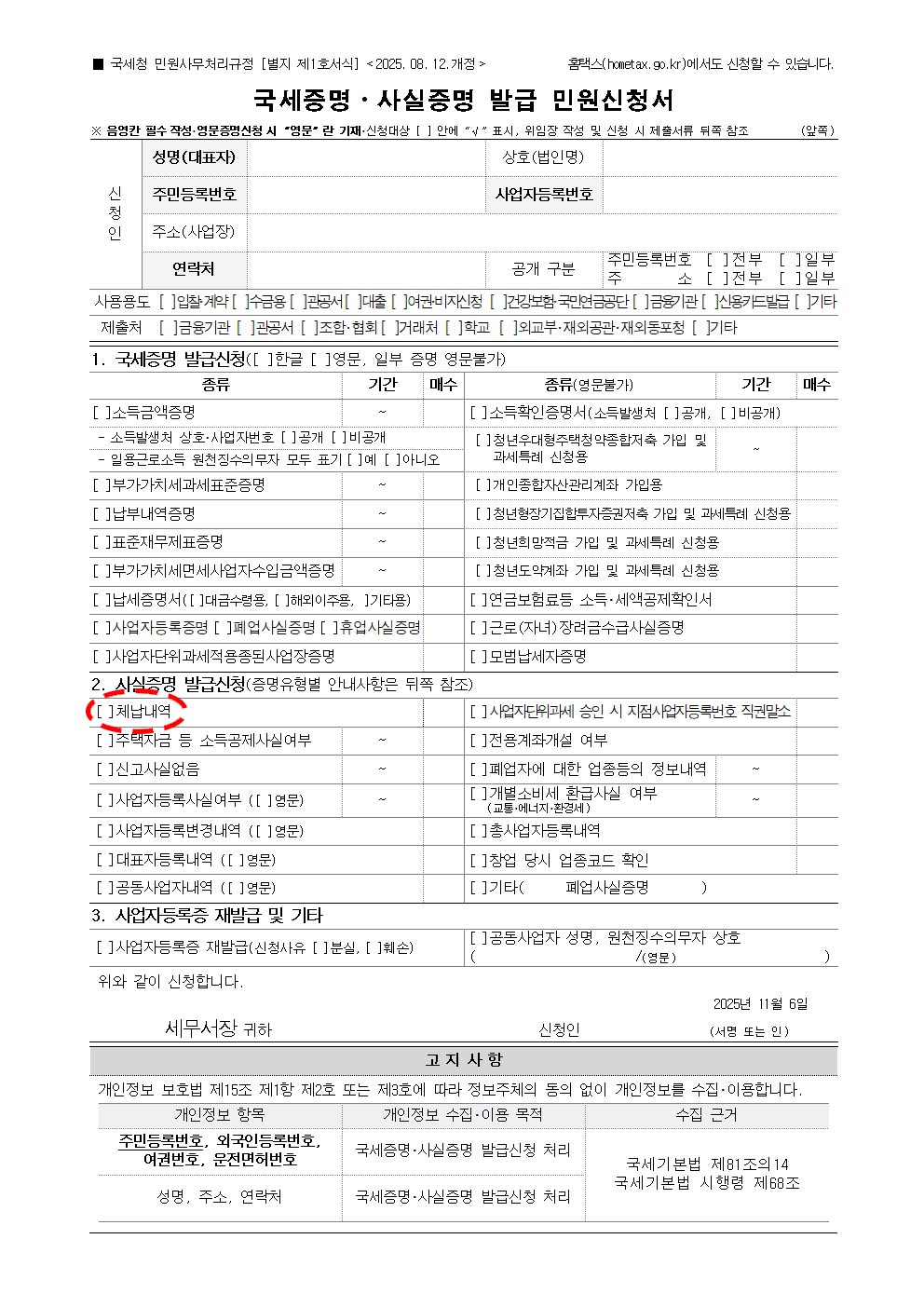 체납 관련 서류 발급을 위한 세무서 방문입니다.