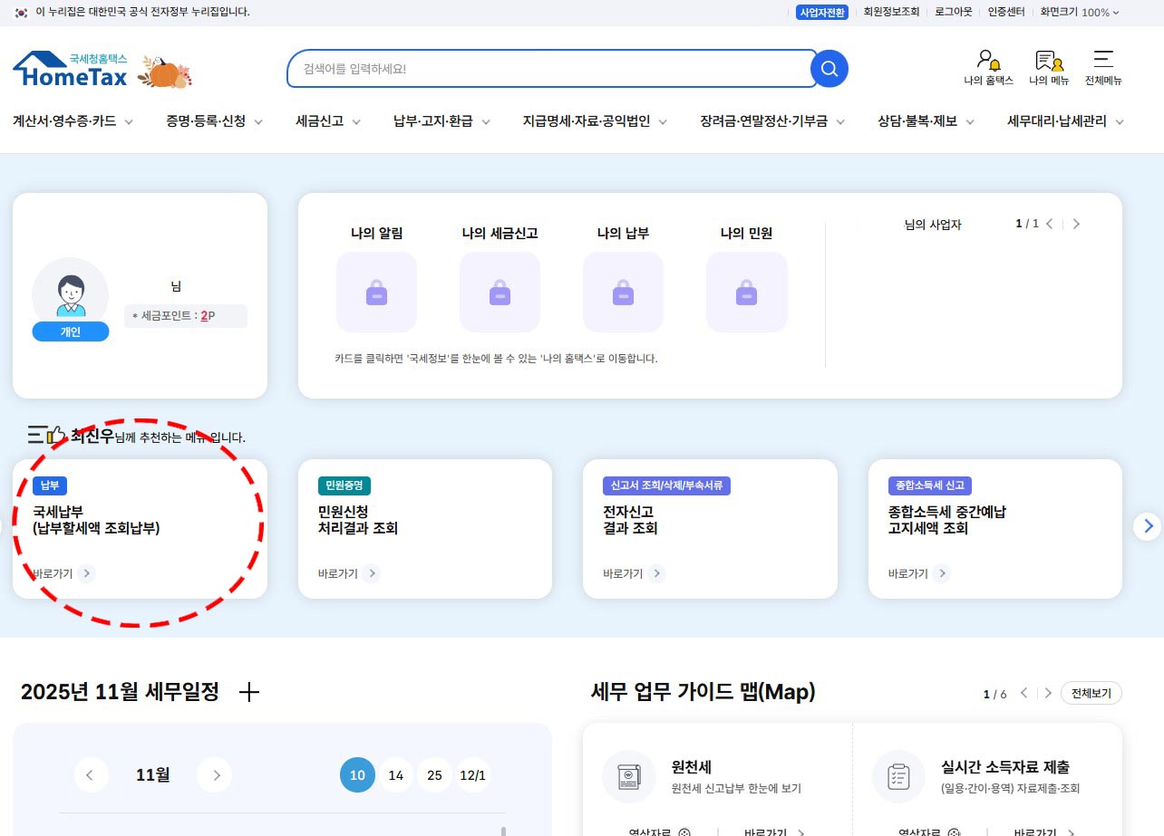 국세청 홈페이지 홈택스 접속 후 아래 절차대로 진행하시면 확인 가능합니다.